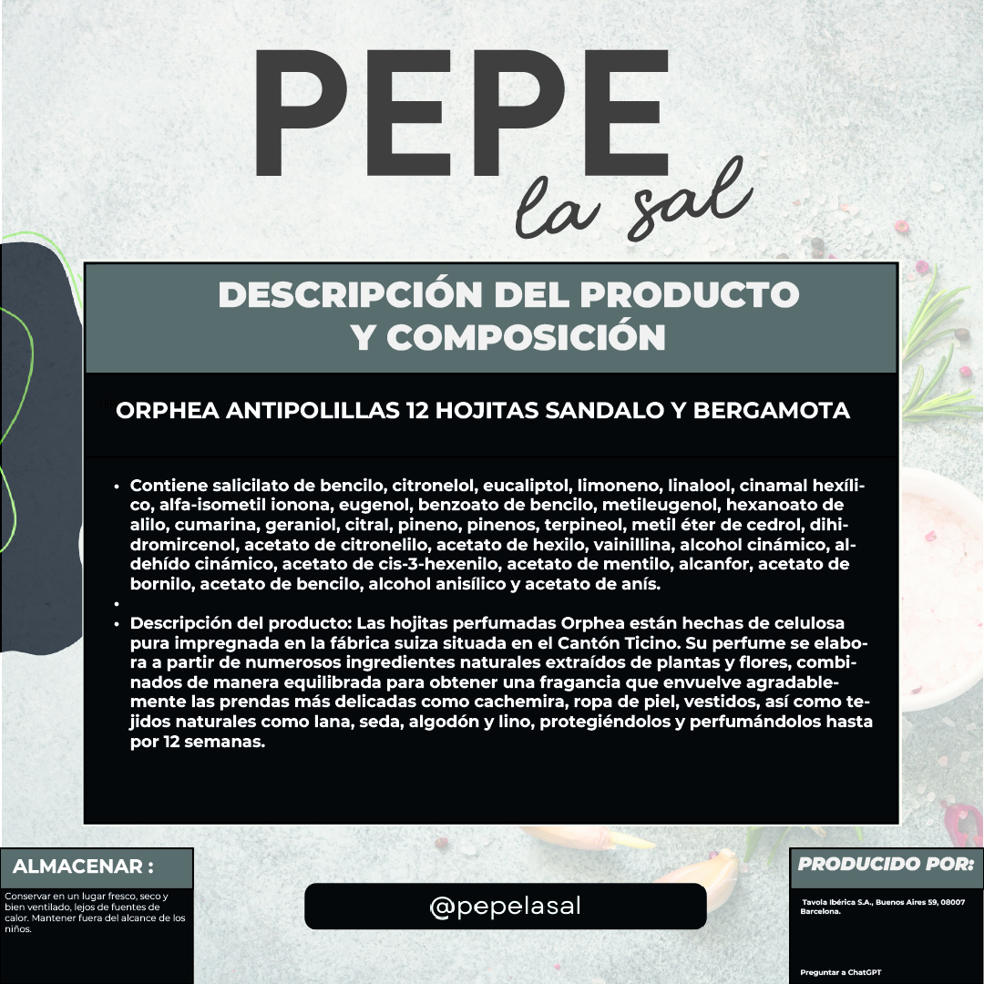 ORPHEA ANTI MOTH 12 BLÄTTER SANDELHOLZ & BERGAMOTTE