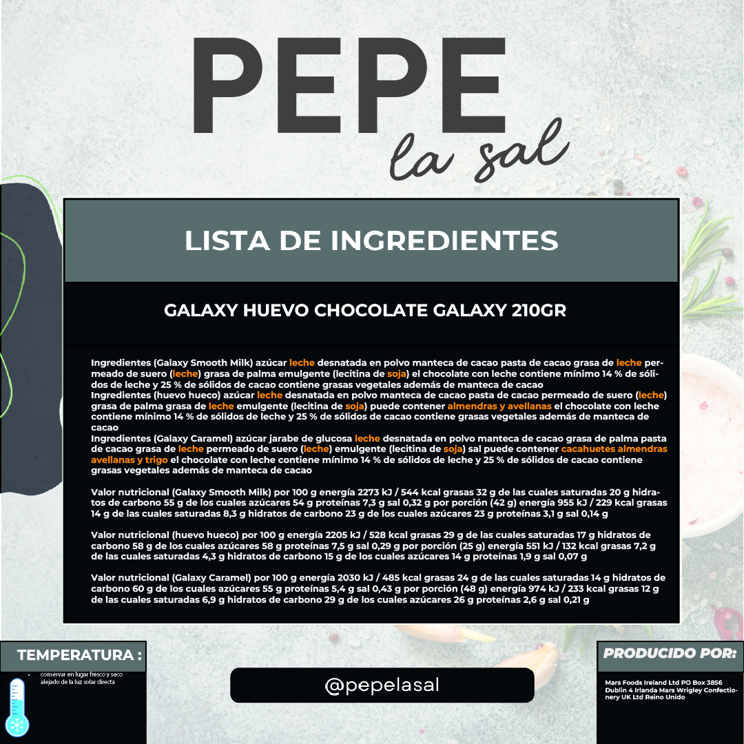 GALAXY HUEVO CHOCOLATE GALAXY 210GR