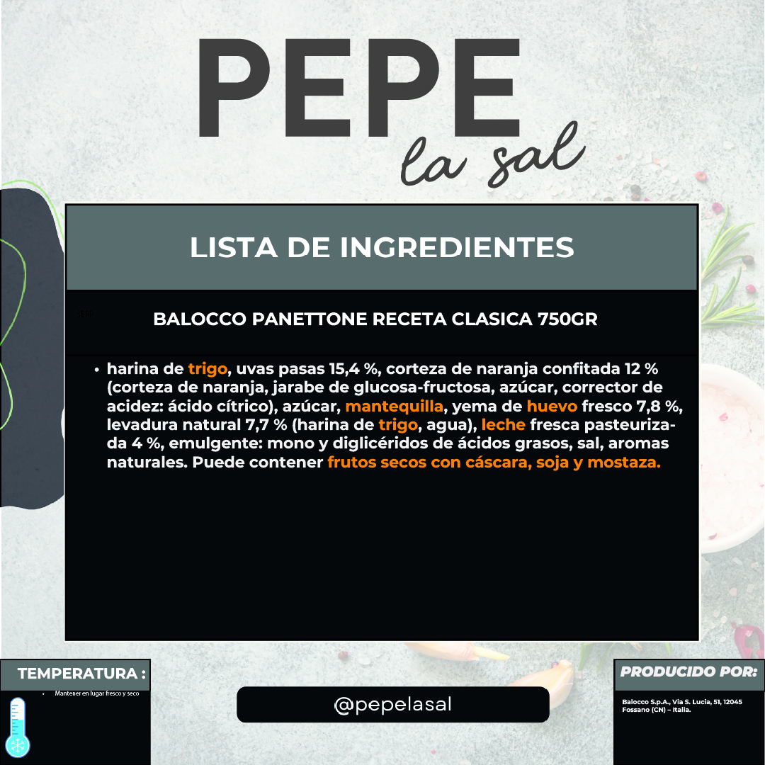 BALOCCO PANETTONE RECETA CLASICA 750GR cantidad