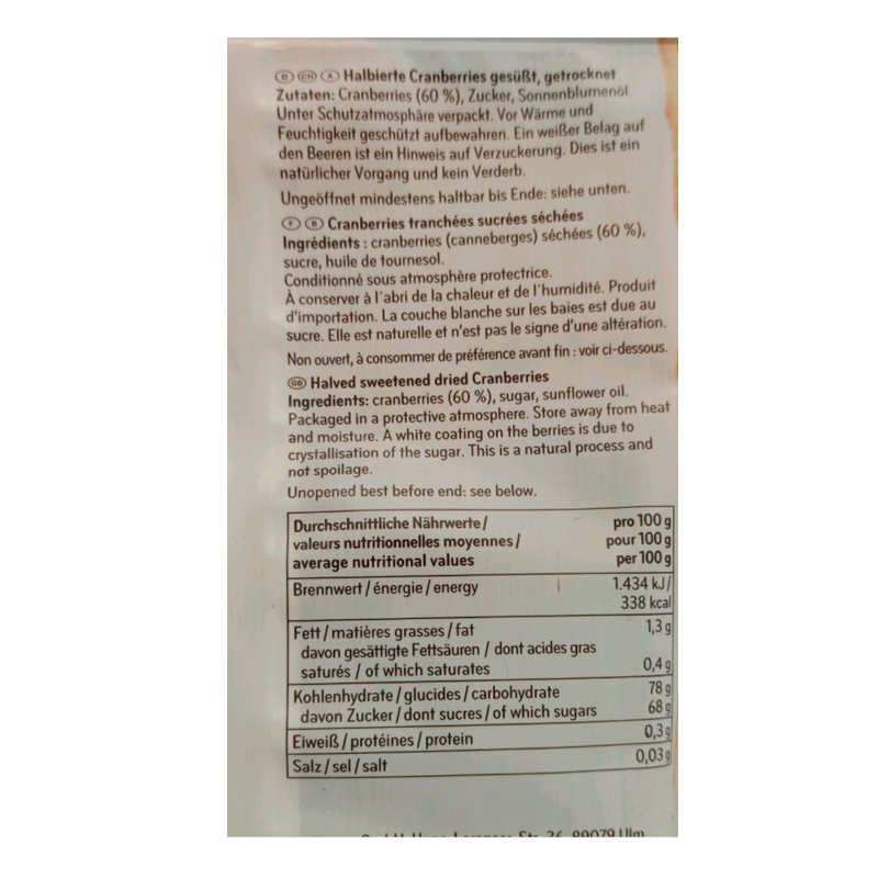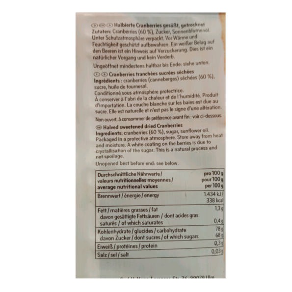 SEEBERGER CRANBERRIES 125GR..